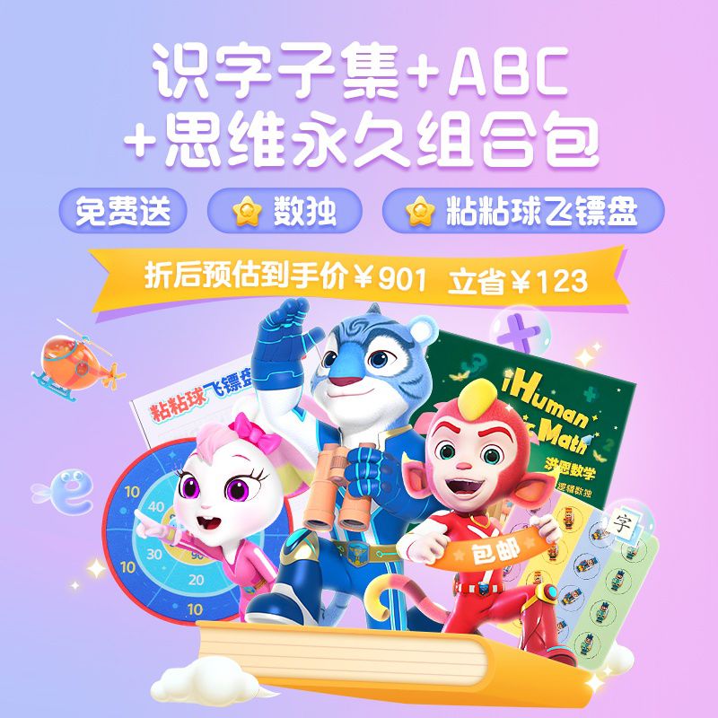 【洪恩三科优惠丨立省123元】洪恩识字永久包(含子集绘本)+洪恩思维永久包+洪恩ABC永久包,包邮送数独、粘粘球飞镖盘,再赠电子故事专辑!