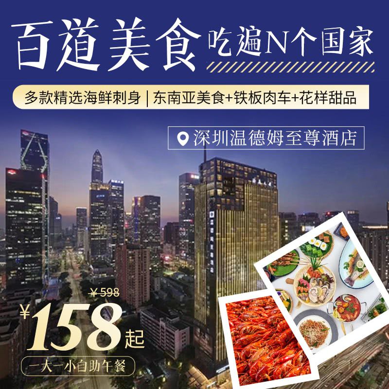 【周末暑期不加收】2.7折开吃!¥158起/1大1小(1.4m),【深圳温德姆至尊酒店】东南亚主题自助午/晚餐!多款精选海鲜刺身,百道美食吃遍N个国家!1号线&10号线双地铁直达~