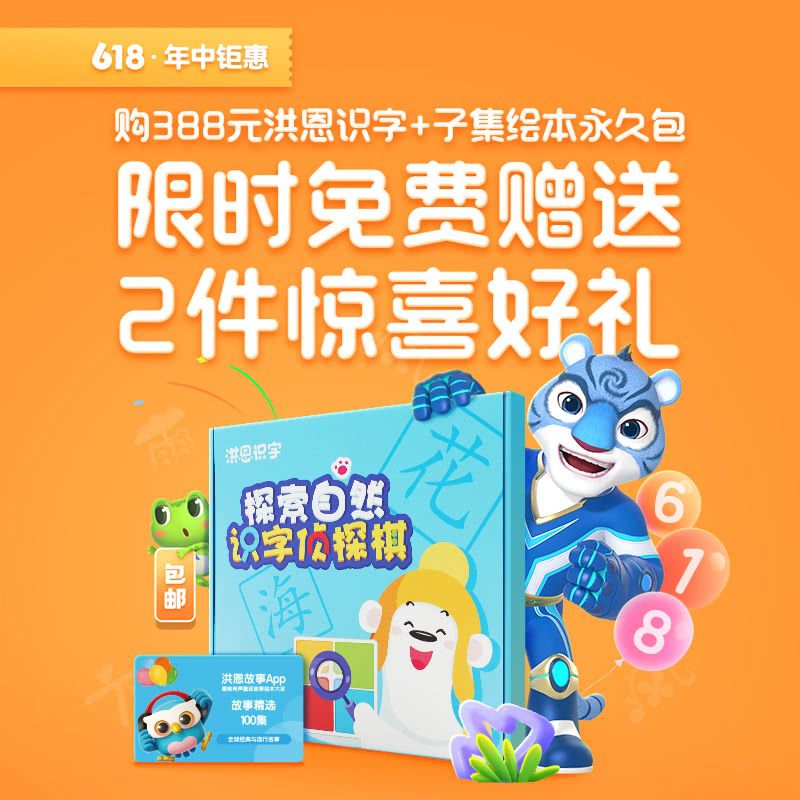 【618年中钜惠6.1-6.30丨包邮送洪恩识字侦探棋+电子故事专辑】洪恩识字永久包+子集绘本永久包,含1300个高频常用汉字!