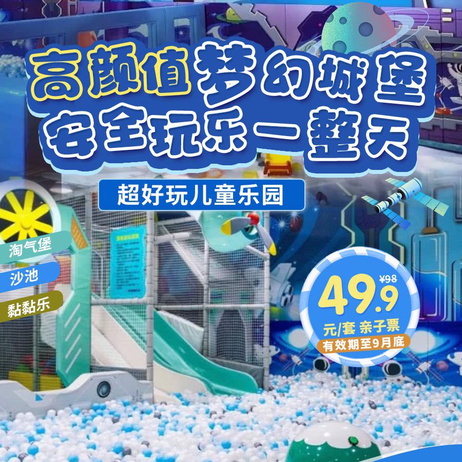 【即买即用】高颜值梦幻城堡!¥49.9/1大1小,不限时畅玩!超好玩儿童乐园,淘气堡+沙池+黏黏乐+模拟厨房...应有尽有,简直不要太好玩~
