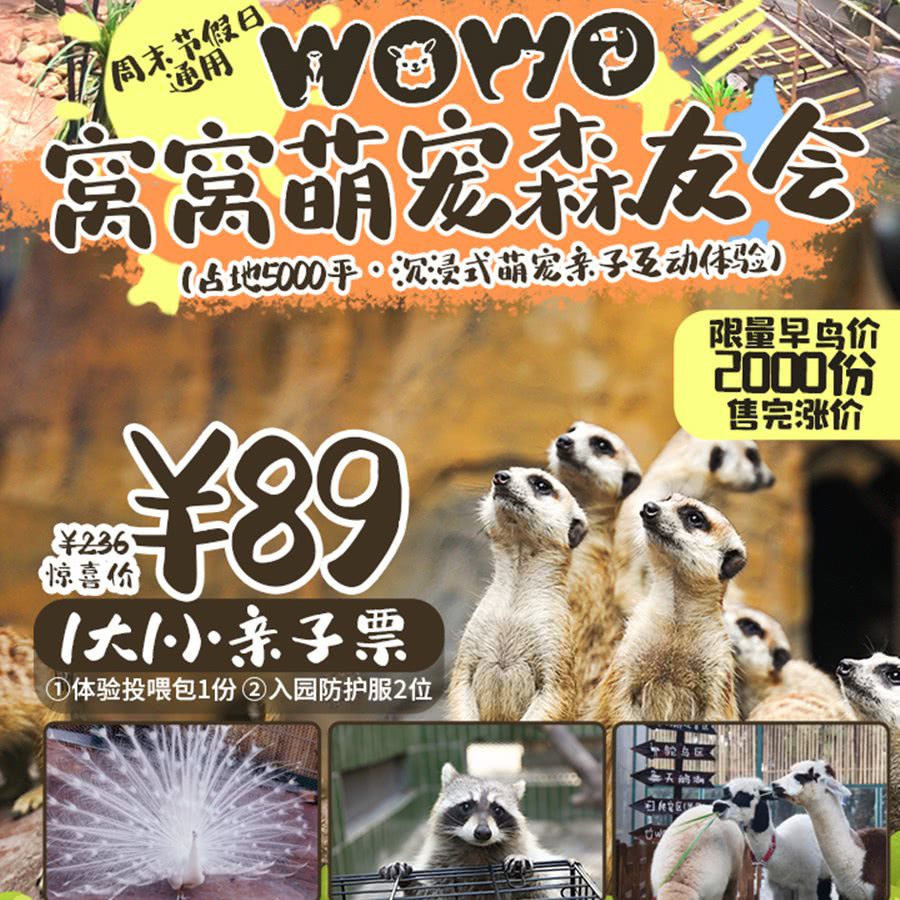 藏在世界之窗里的萌宠世界!【窝窝萌宠森友会】6.18新店开业!首波¥89/1大1小,售完即涨!5000+㎡沉浸式萌宠乐园,数十种珍贵动物!周末暑期通用~