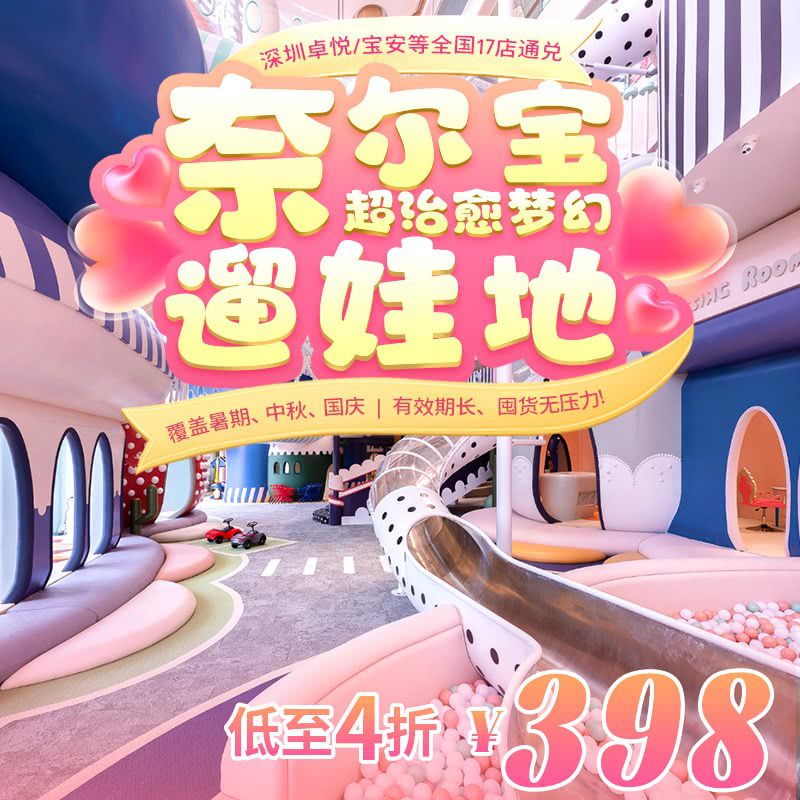 【奈尔宝】暑期大放“价”!人均¥66.4/次,¥398/2大1小2次卡,暑期中秋国庆都可用!深圳福田卓悦/宝安海雅等全国17店通兑,囤票无压力!超治愈梦幻遛娃地速来~