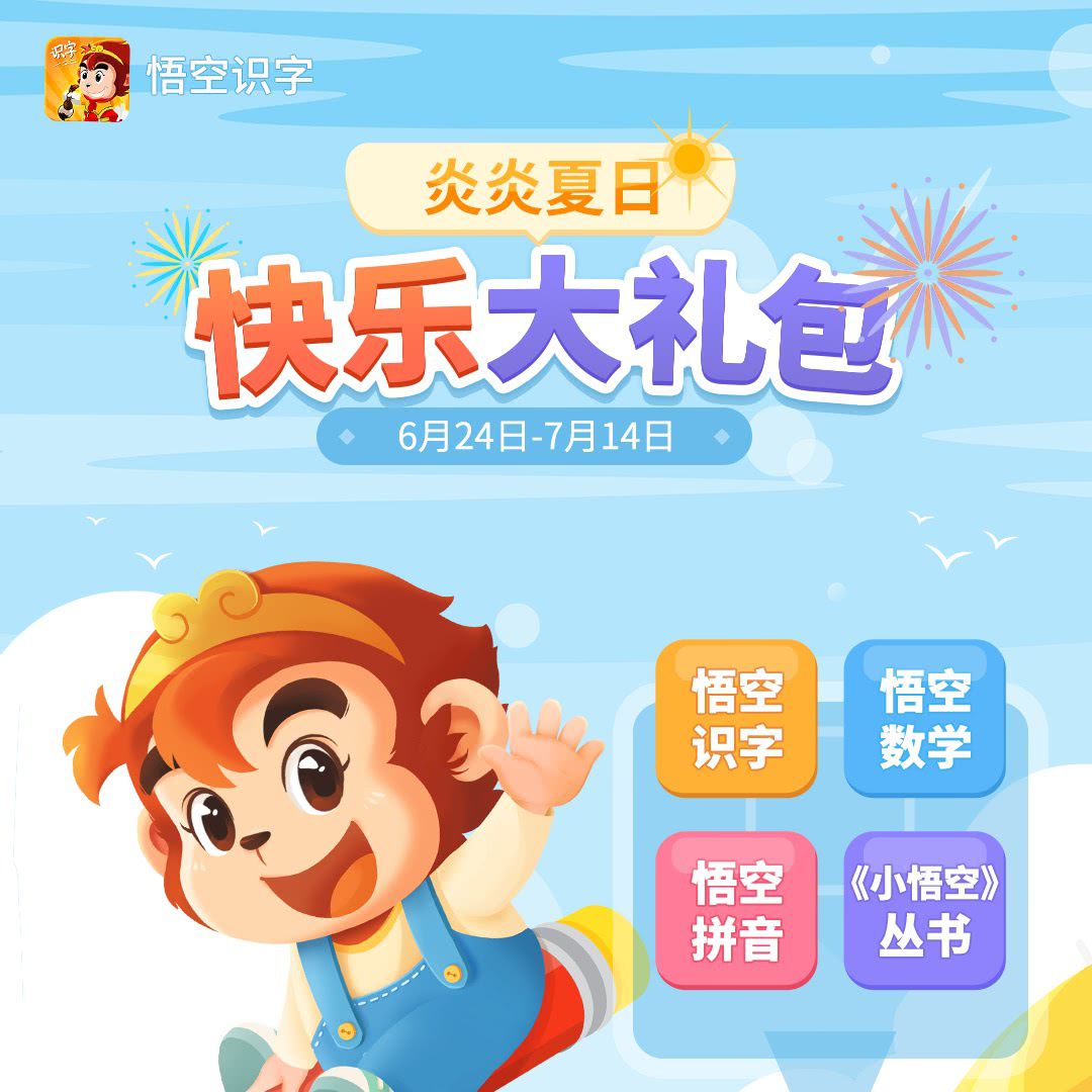【7月14日22点下架 】夏日快乐大礼包,398元学3年,悟空识字/拼音/数学,另包邮送《小悟空》丛书一本,结合儿童熟悉的《西游记》经典场景,每天只需10分钟,有趣又轻松!