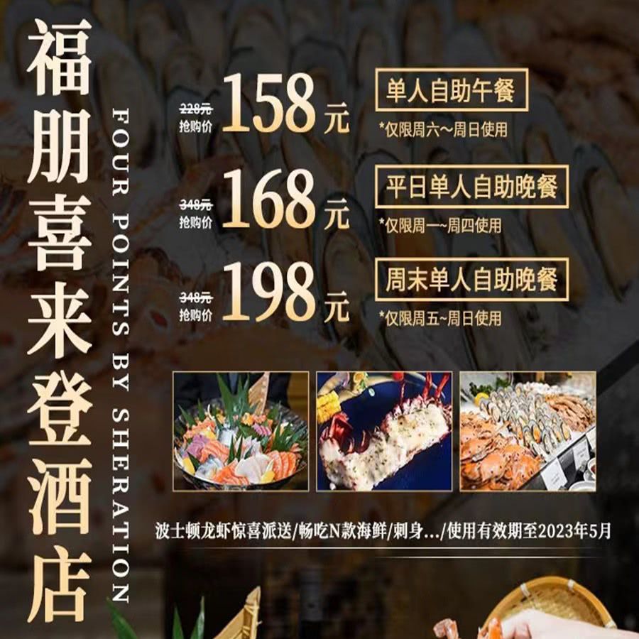 有效期长至23年5月底!¥158起奢享万豪系酒店【深圳福朋喜来登酒店】自助:波士顿龙虾周末晚餐派送,海鲜/现切刺身秒回本,红白葡萄酒畅饮!地铁4/10号线直达~