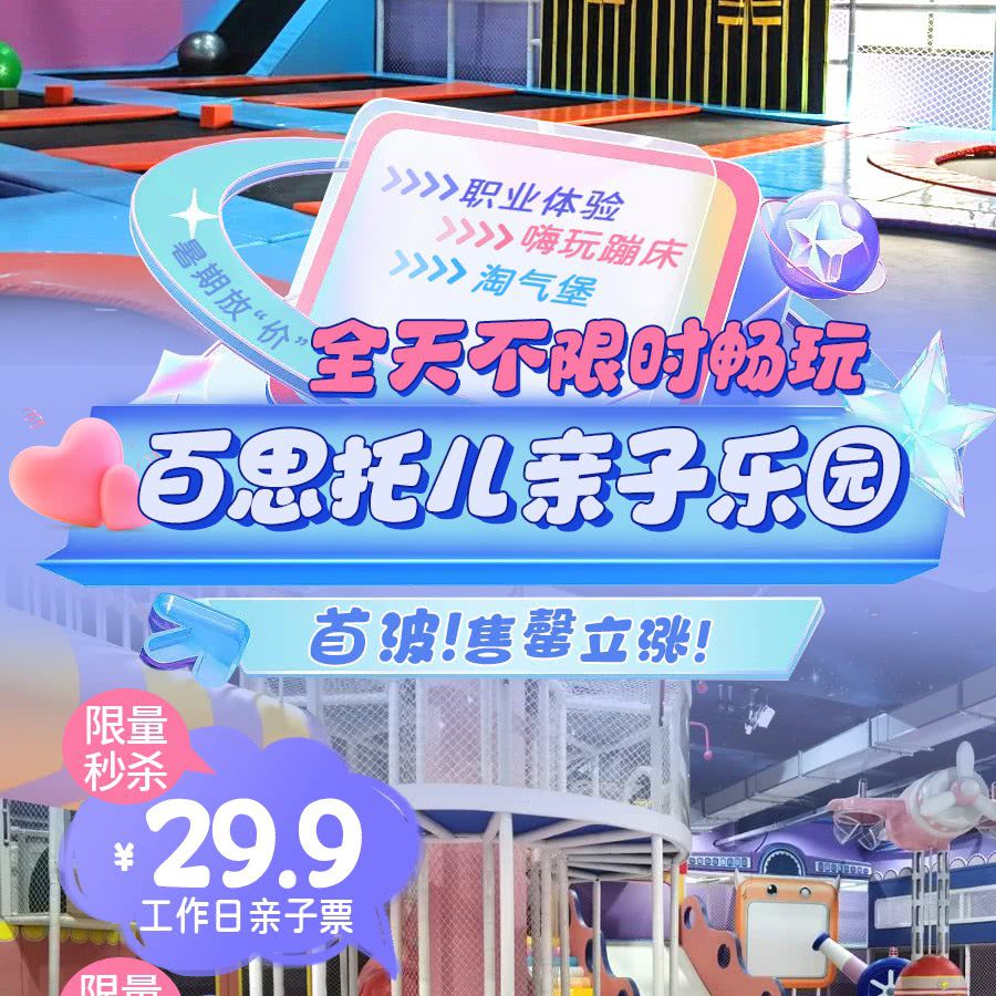【暑期放“价”】首波¥29.9起/1大1小,售罄立涨!3000㎡百思托幼亲子乐园,不限时畅玩:淘气堡、蹦床、职业体验...无须预约,地铁可达!遛娃就选它~