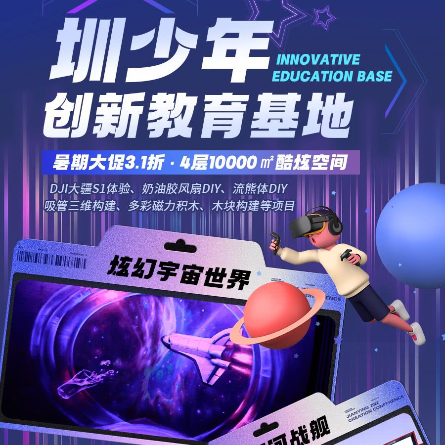 【暑期大促3.1折】¥68亲子体验票!圳少年创新教育基地,4层10000㎡酷炫空间,趣享银河战舰&X-box+星空馆+奶油胶风扇DIY!沉浸式体验get,圆宝贝科学梦~