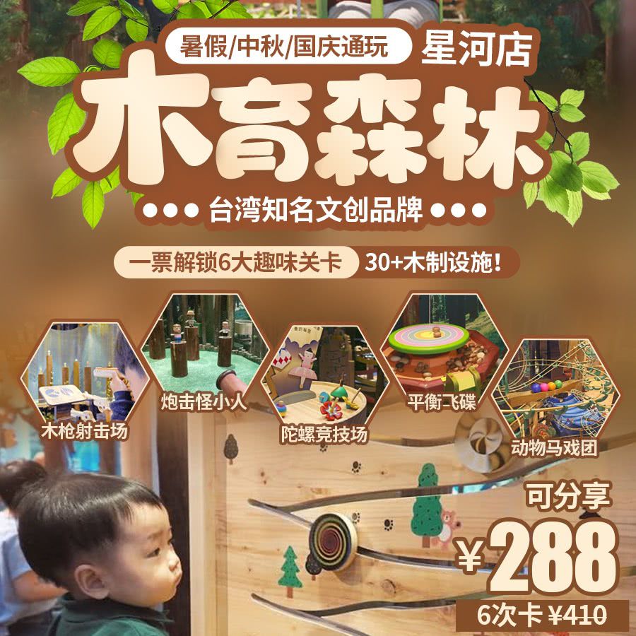 【木育森林·星河店】暑假/中秋/国庆通玩!单次¥48,抢6次卡(可分享)!台湾知名文创品牌,一票解锁6大趣味关卡,30+木制设施!打卡“童话森林”~