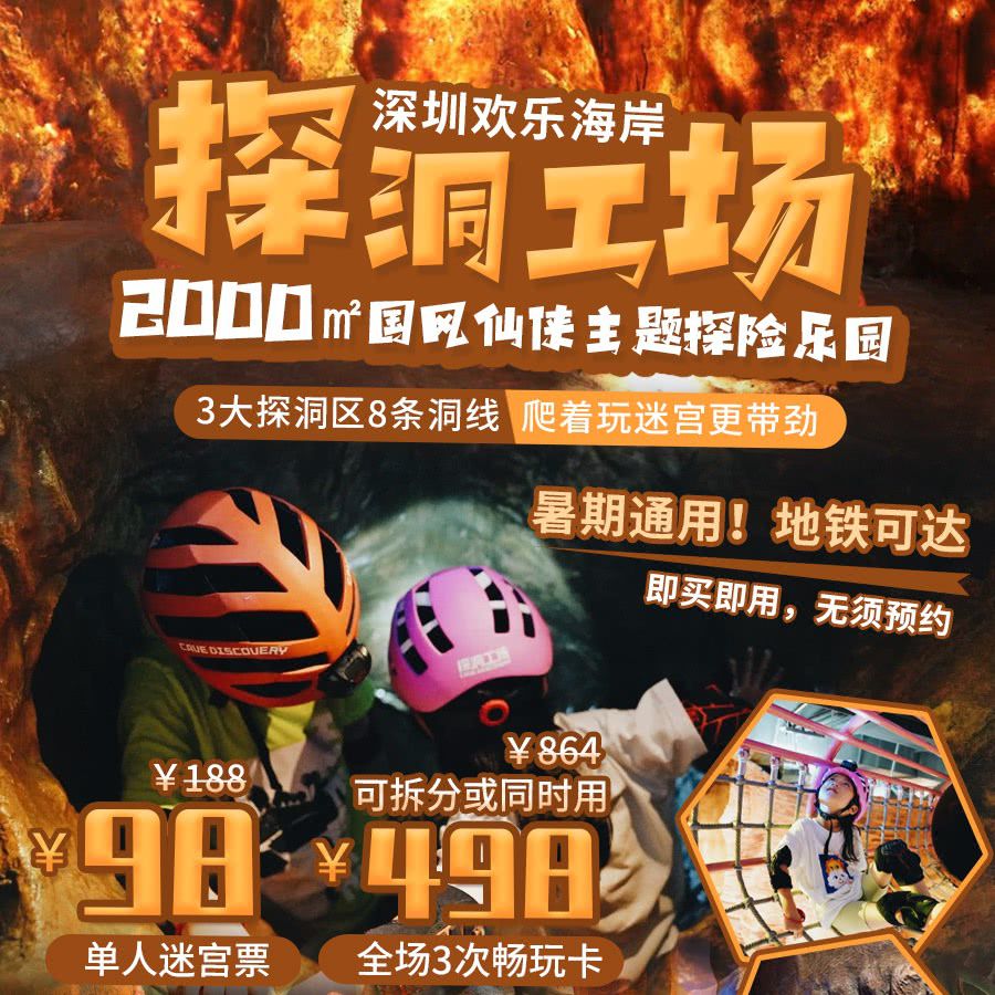 深圳欢乐海岸【探洞工场】燃爆暑期!¥98迷宫区票,¥498全场3次卡!2000㎡国风仙侠主题探险乐园,4大区域8条洞线,爬着玩迷宫更带劲!即买即用,无需预约~