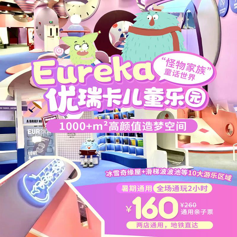 【暑期通用】真实版“怪物家族”!¥160/1大1小,全场通玩2小时!Eureka优瑞卡儿童乐园,冰雪奇缘屋+滑梯波波池等10大游乐区域!两店通用,地铁直达~