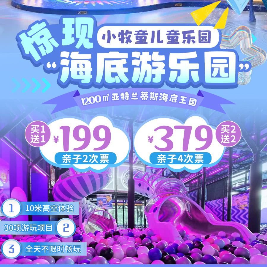 宝能环球汇惊现“海底游乐园”!新店开业·买一送一 | ¥199=1大1小2次票!1200㎡小牧童游乐园,全天不限时畅玩,凭腕带可再次入园,无需预约!周末/节假日通用~