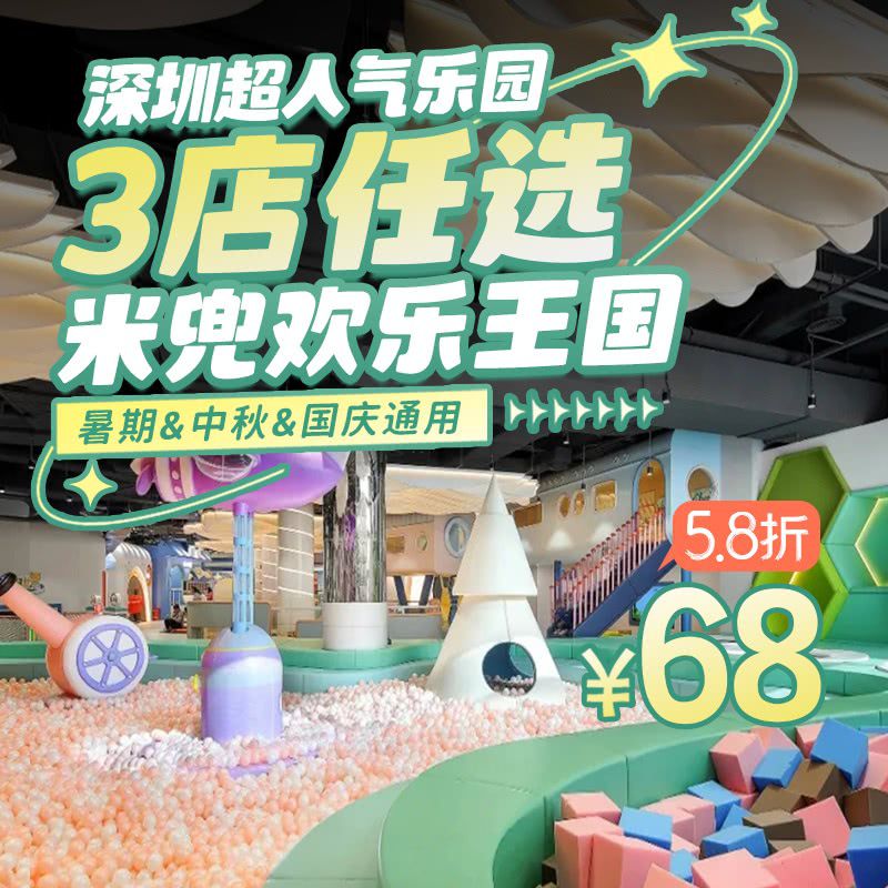 【暑期中秋国庆通用】深圳超人气乐园3店任选,米兜欢乐王国,低至¥68亲子畅玩1.5h,赠10枚游戏币,还有妈妈的私人空间!室内清凉避暑遛娃~