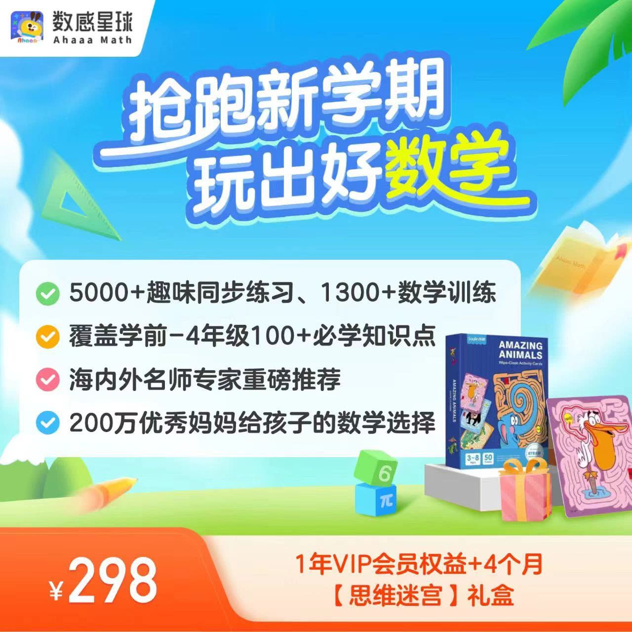 【数感星球 | 限时特惠:298元/年】好未来投资&中科院院士推荐 4-9岁玩出好数学,5000+趣味同步练习 ,1300+数学游戏 ,100天内累计签到30天加赠4个月会员!