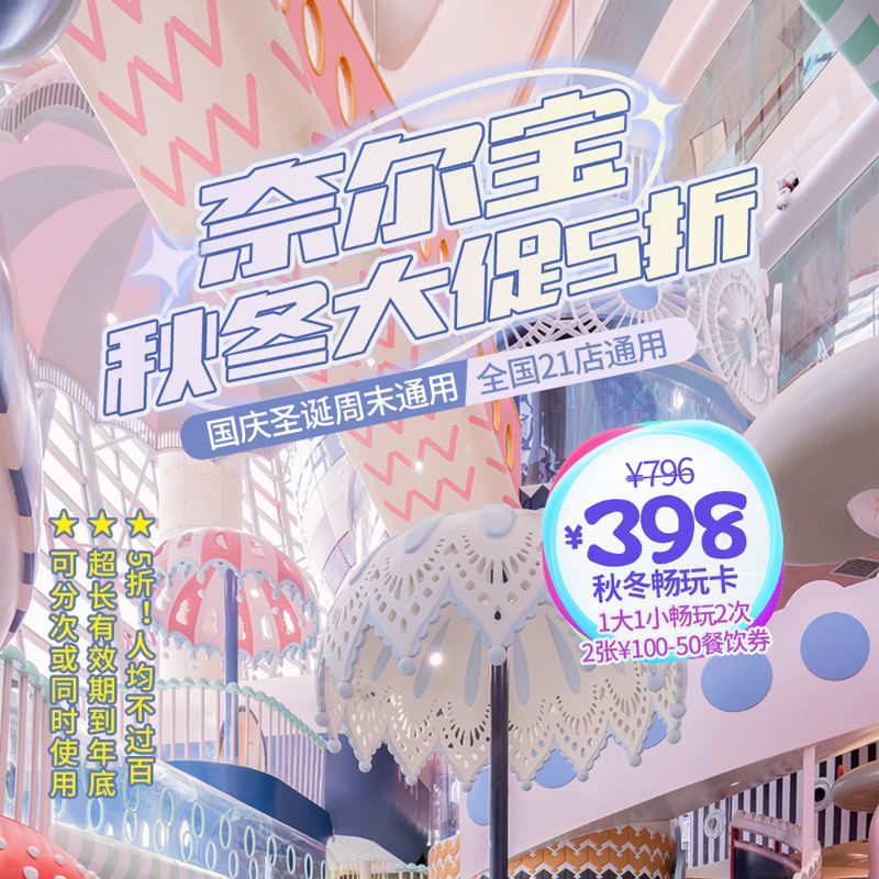国庆圣诞周末通用!5折【奈尔宝】秋冬畅玩卡,¥398/1大1小玩2次,赠2张100-50餐饮券,深圳海雅/卓悦/东莞汇一城店通用!有效期到年底,囤囤囤~
