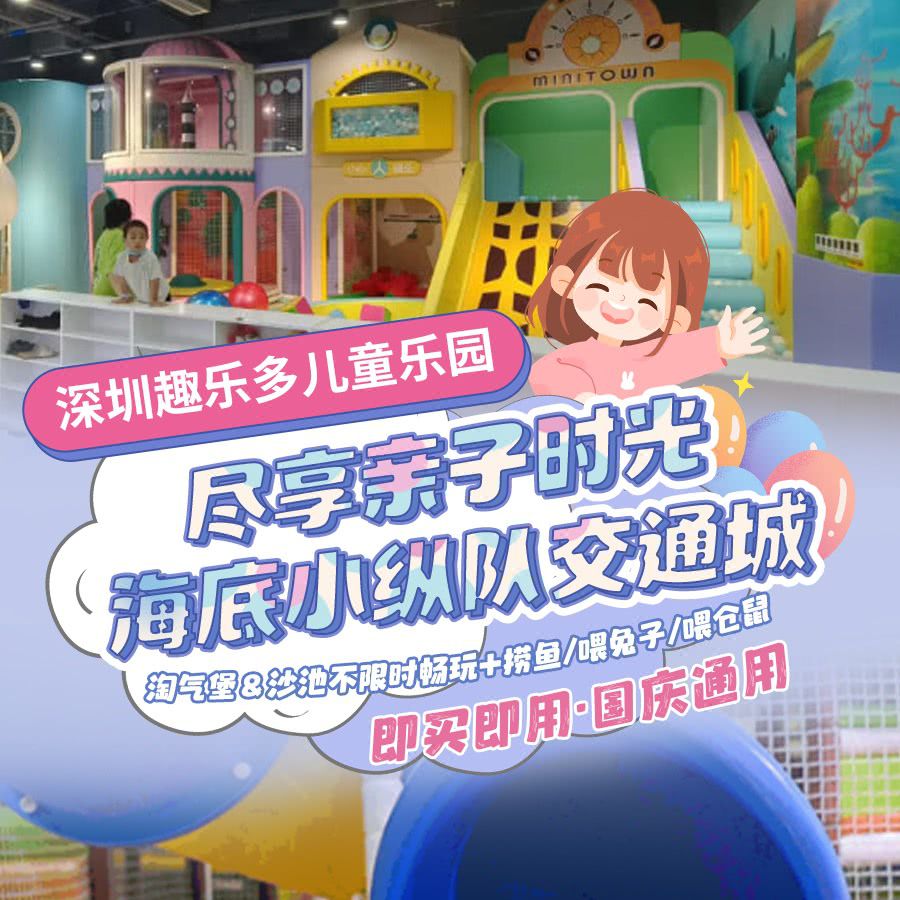 【即买即用·国庆通用】深圳趣乐多儿童乐园(龙岗万达店)搞活动啦!¥48.8=淘气堡&沙池不限时畅玩+捞鱼/喂兔子/喂仓鼠,海底小纵队交通城,尽享亲子时光~