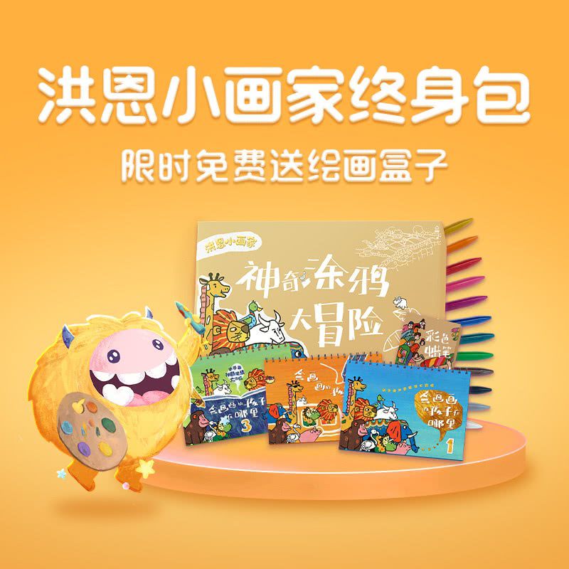 【洪恩双11丨包邮送绘画礼盒】¥312洪恩小画家永久包,150+涂色主题,⽤画笔讲故事,多种绘画工具,让想象活灵活现 ,随时随地拿起画笔涂鸦创意~