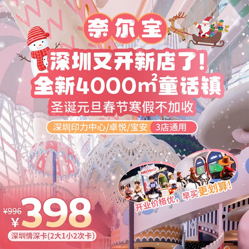 全城瞩目!【奈尔宝】深圳又开新店了!人均¥66.4,¥398/2大1小2次!全新4000m²童话镇梦幻来袭!深圳三店通用,抢囤双旦春节寒假~开业价格优,未使用可退~