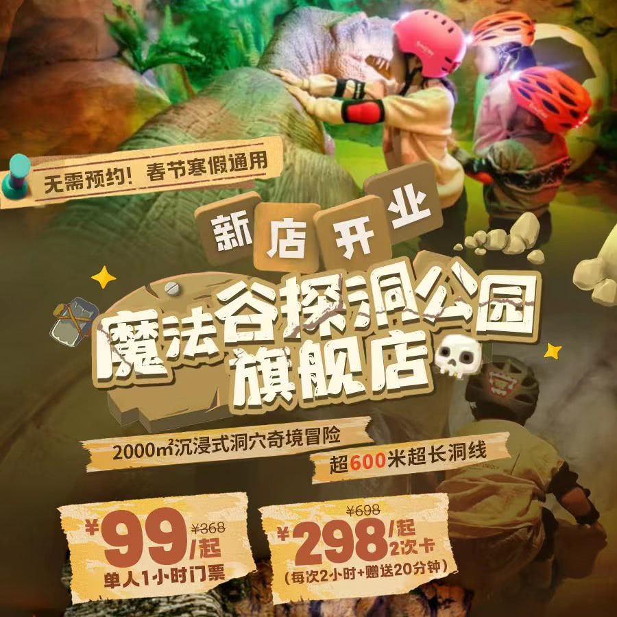 ¥99起开业大促,次卡更划算可分享!2000㎡魔法谷探洞公园旗舰店,全场8条线路畅玩、超多拍照打卡点,沉浸式洞穴奇境冒险!坐标龙华星河CoCocity!即买即用,春节寒假通用~