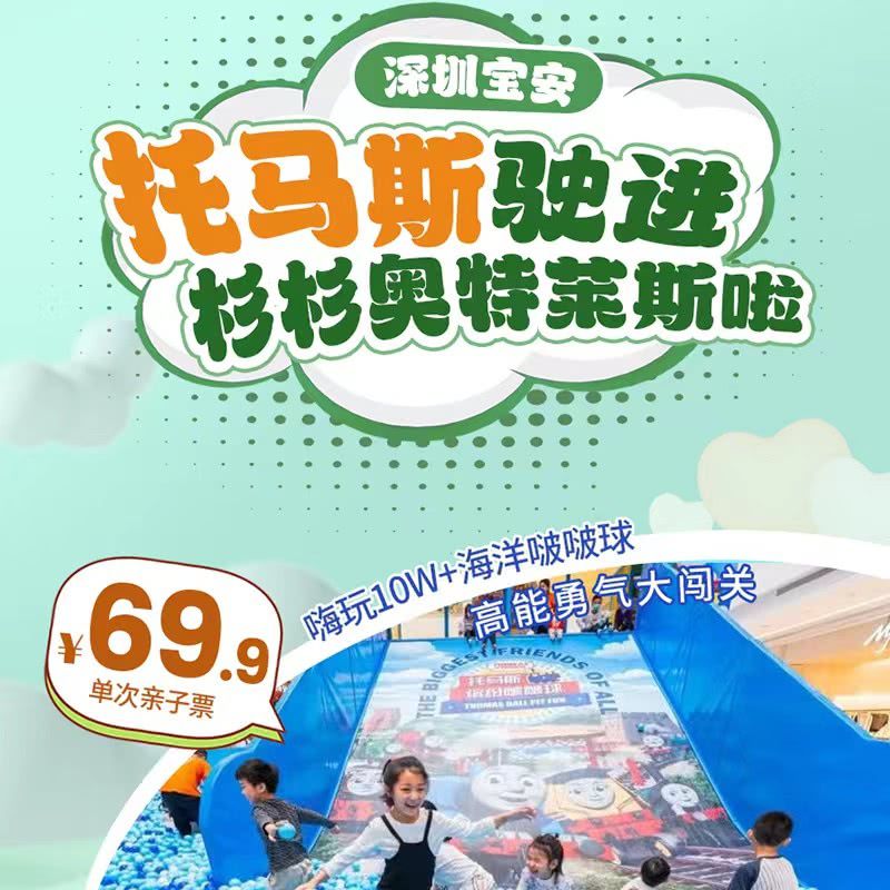嘟嘟嘟!托马斯驶进深圳宝安杉杉奥特莱斯啦! ¥69.9/1大1小(不限身高),嗨玩10W+海洋啵啵球,高能勇气大闯关!超好玩,巨过瘾!周末通用~