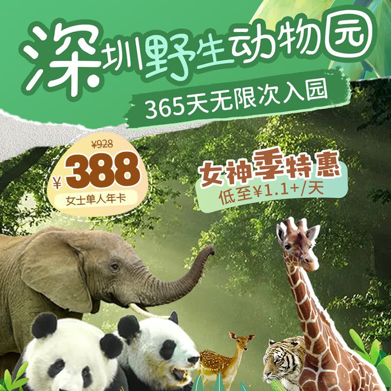 女神季特惠!¥388起抢【深圳野生动物园】女士/单人/2大1小年卡,365天无限次入园!低至¥1.1+/天,可带1名1.2米以下儿童!60多万㎡遛娃胜地~地铁直达!