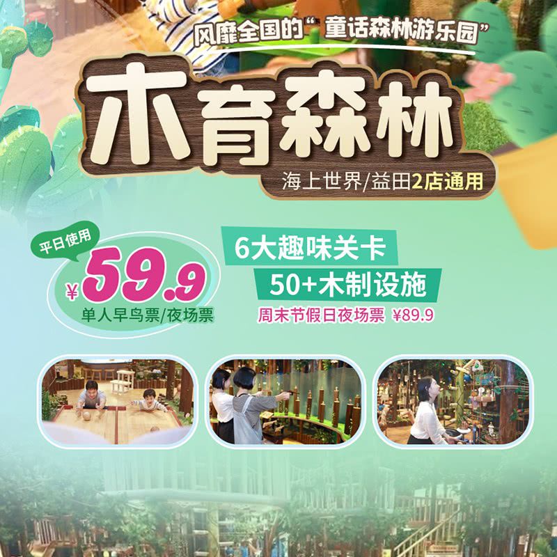 【海上世界/益田2店通用】低至¥59.9起,风靡全国的“童话森林游乐园” | 木育森林,6大趣味关卡,50+木制设施,体验独特木乐趣~