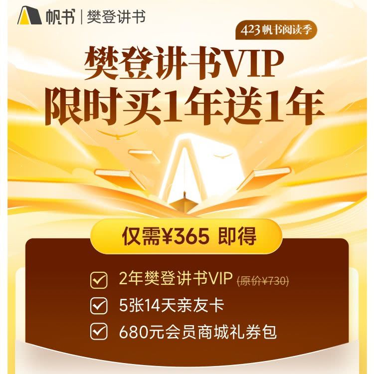 【樊登读书 | 买1年送1年】4.6-4.27限时活动 ¥365享买一年送一年VIP年卡!再加5张14天亲友卡+价值680元会员商城礼包券!樊登读书听懂好书,生活更好