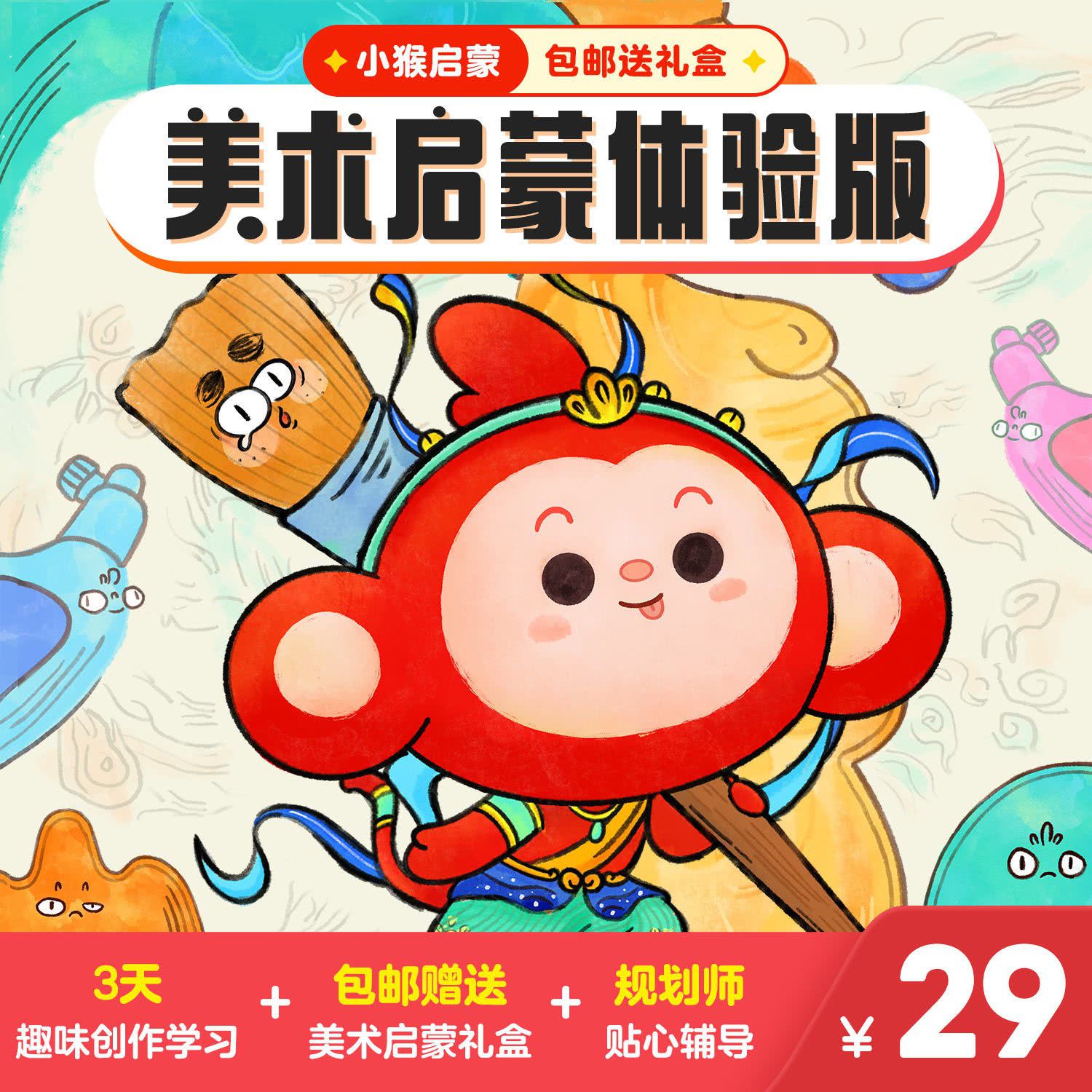 【小猴美术启蒙|包邮送精美画材礼盒】3天趣味创作学习+规划师贴心辅导,288+美术知识、200+绘画技法,四步学习闭环,培养绘画好习惯,仅需一杯奶茶钱,就可以带回家!