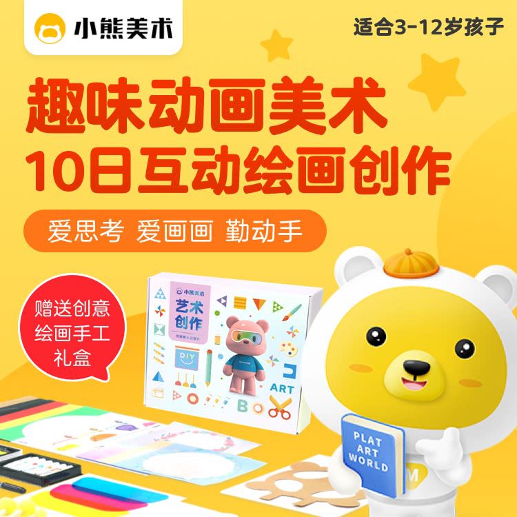 【小熊美术】包邮送画材礼盒,小熊美术·少儿美育综合素养AI课,8节AI互动课+2节动画情景TV课+专属辅导,培养孩子艺术素养