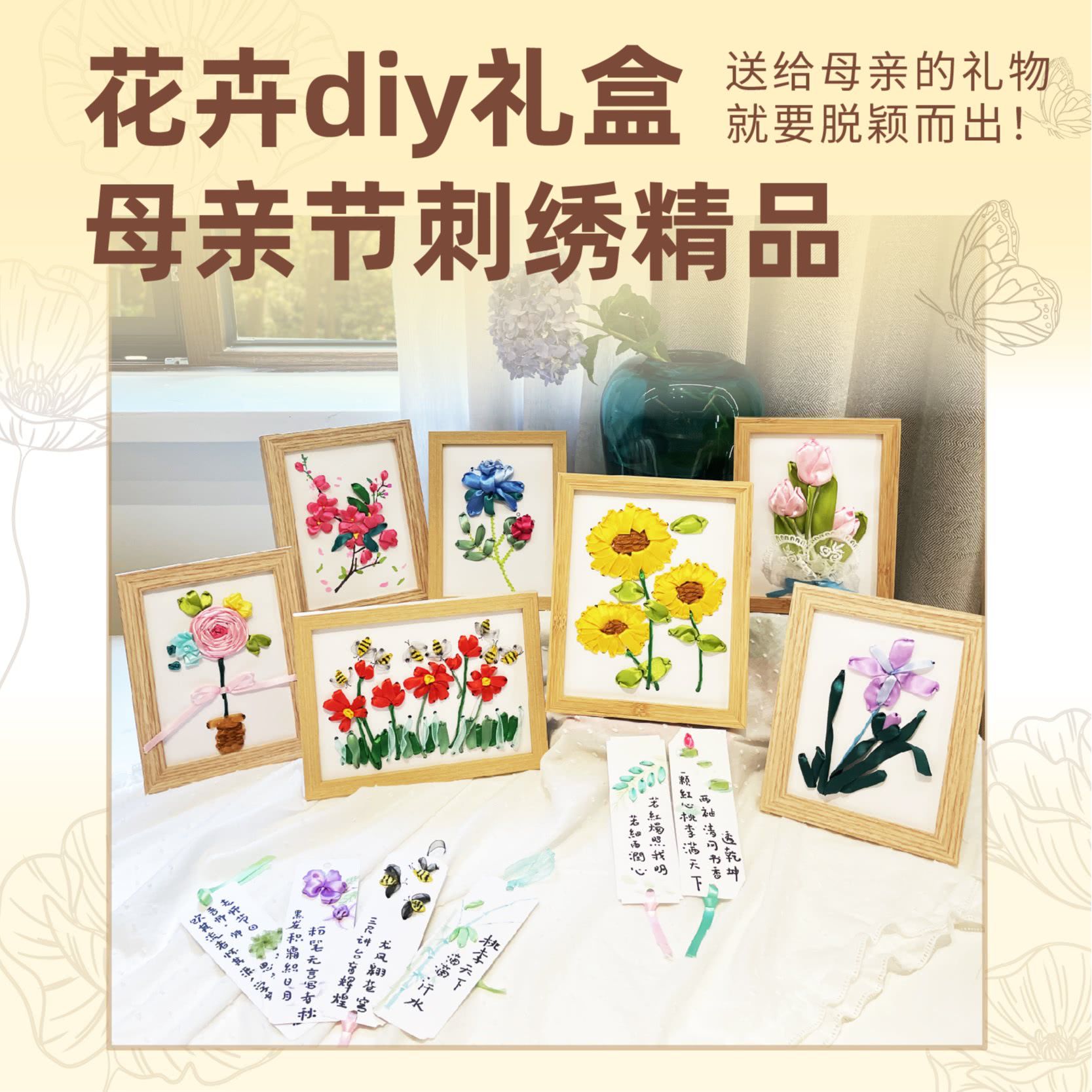 【哈喽爱豆母亲节DIY花卉礼盒】7幅立体丝带绣花卉作品+6种丝带绣书签+13个创作教学视频,共13款花卉作品任选,亲手编织永不凋零的花送给亲爱的妈妈