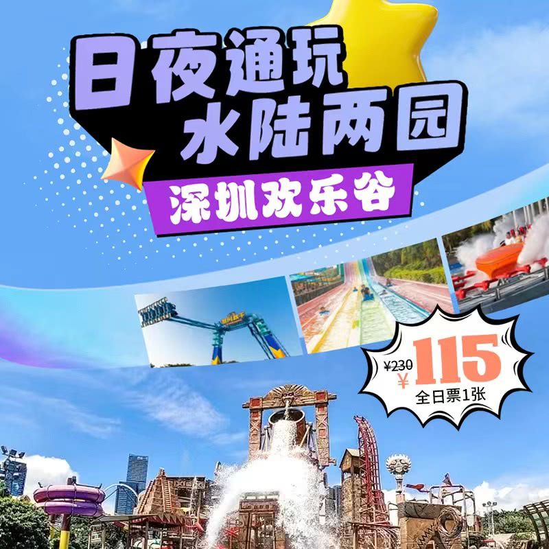5.19中国旅游日全民半价!¥115日夜通玩水陆两园!【深圳欢乐谷】玛雅水公园清凉一夏、打卡百余项游玩项目、边走边看潮酷大秀、35万㎡炫彩光乐园...