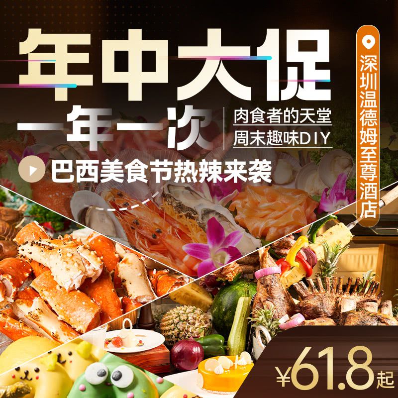 年中大促自助¥61.8起!【深圳温德姆至尊酒店】巴西美食节热辣来袭,周末端午暑期国庆不加收!晚餐畅吃生蚝、安格斯牛肋排、草饲牛后腹肉、周末小龙虾!618囤超划算,超长有效~