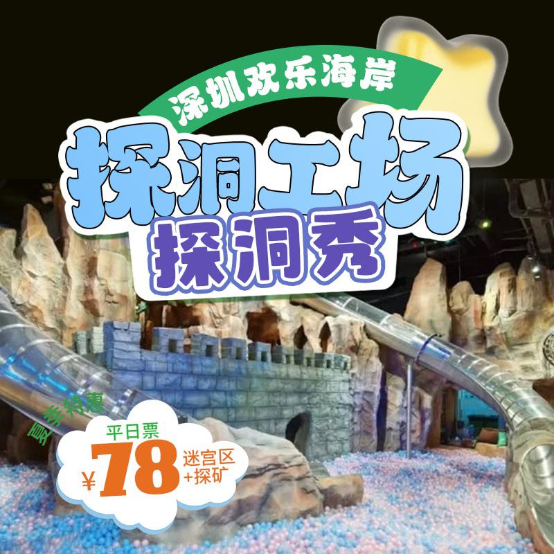 夏季特惠!深圳欢乐海岸【探洞工场&探洞秀】,¥78探洞迷宫区1小时+探矿淘金平日票!¥198起2店通用,平日2小时票!解锁任务+探洞的地心探险,趣味翻倍~