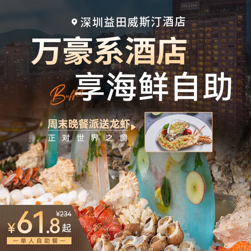 【618年中大促】海鲜自助¥61.8起!深圳益田威斯汀酒店,周末晚餐龙虾派送、鹅肝等特色菜任吃!周末端午暑期不加收,有效至9.30,赶紧囤票啦!
