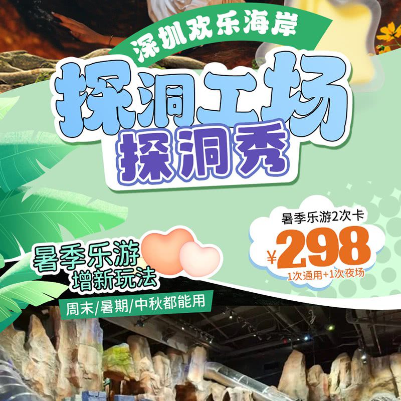 【探洞工场&探洞秀】暑季乐游,增新玩法!¥298两次卡(1次通用+1次夜场),¥498三次通用卡(可拆分),周末暑假中秋都能用,一起来“原始山洞”探险吧~