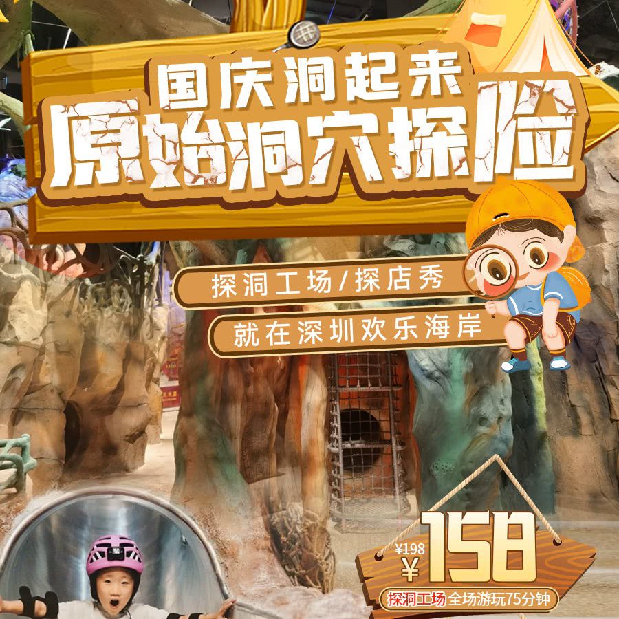 【国庆预售票抢先买,加量不加价】¥158探洞工场全场游玩75分钟、¥198探洞秀游玩120分钟,周末节假日通用,有效期到11.30!洞起来,“原始洞穴”探险,就在深圳欢乐海岸!