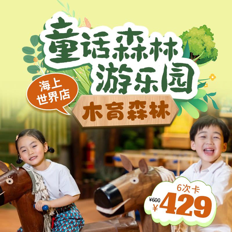 周末中秋国庆通用!【木育森林·海上世界店】低至¥71.5/次,¥429抢6次卡,可分享!童话森林游乐园,6大趣味关卡,50+木制设施~有效期到12.24