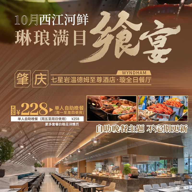 【有效期长至24年12月】自助晚餐¥228起!肇庆市七星岩温德姆至尊酒店,10月西江河鲜·琳琅满目飨宴,冰镇海鲜&煎扒区&甜品...主题不定期更新!