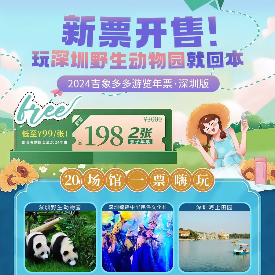 【2024新票开售】低至¥99/张!玩深圳野生动物园就值回票价!《吉象多多游览年票·深圳版》,锦绣中华、光明农场、贝尔等20+场馆,一票嗨玩珠三角!