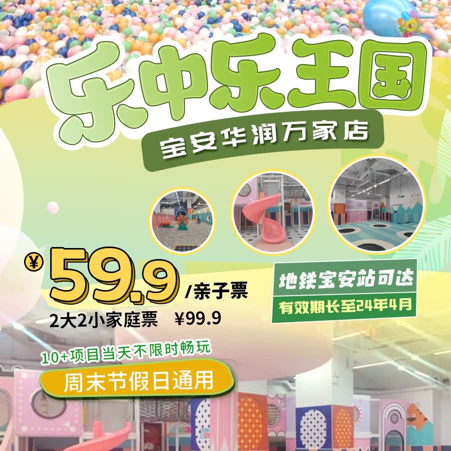 【有效期长至24年4月】¥59.9/1大1小!乐中乐王国(宝安华润万家店),10+项目当天不限时畅玩!周末元旦春节通用!地铁宝安站可达