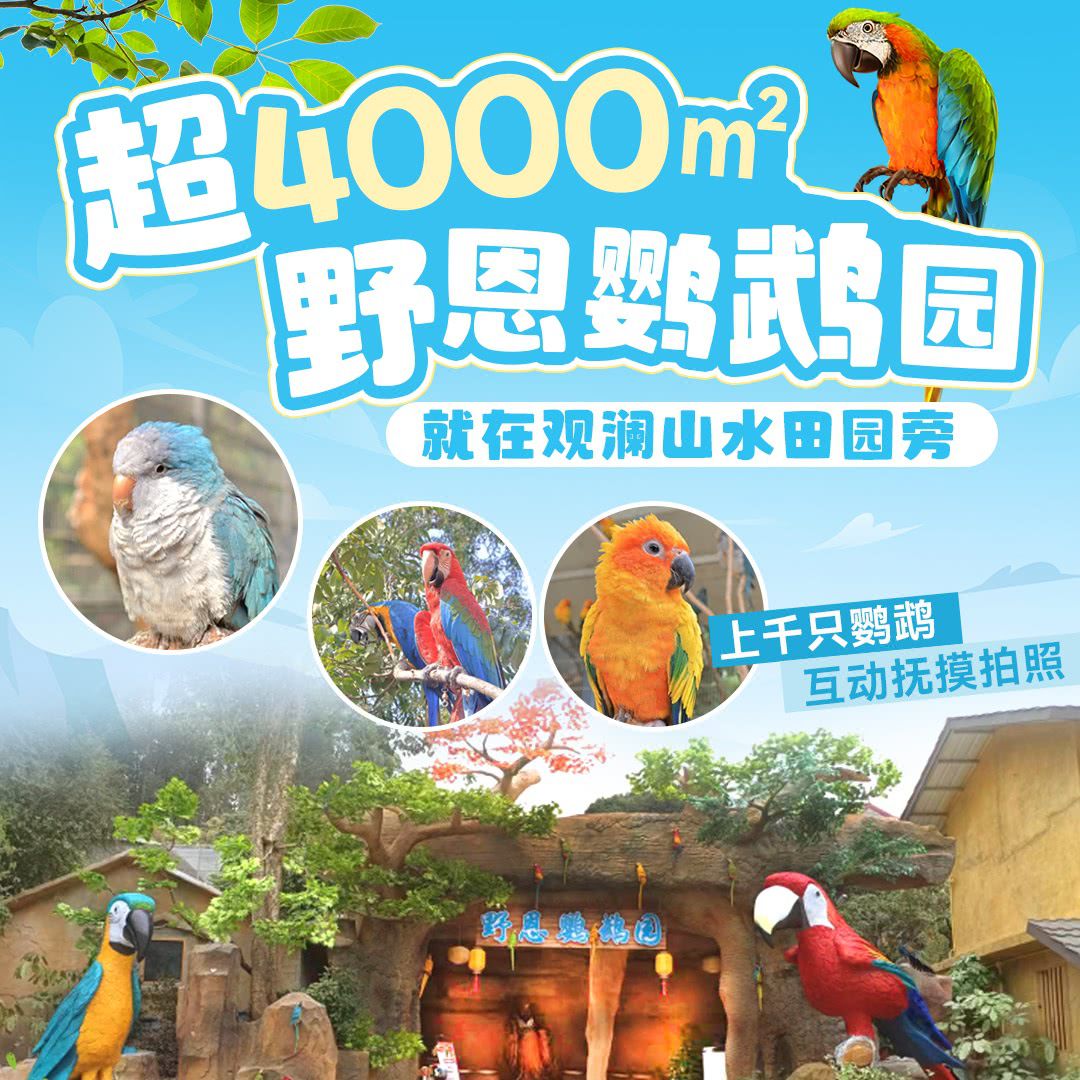 【寒假春节通用】超4000㎡野恩鹦鹉园,就在观澜山水田园旁!¥69/1大1小!金刚鹦鹉/彩虹鹦鹉/虎皮鹦鹉等上千只鹦鹉,让你互动,抚摸,拍照!遛娃胜地