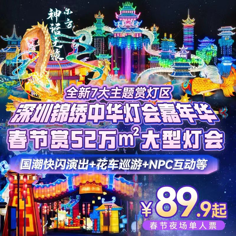 【春节专场】赏52万㎡大型灯会!¥89.9起深圳锦绣中华灯会嘉年华!全新7大主题赏灯区,国潮快闪演出+花车巡游+NPC互动...开启东方神话之旅~