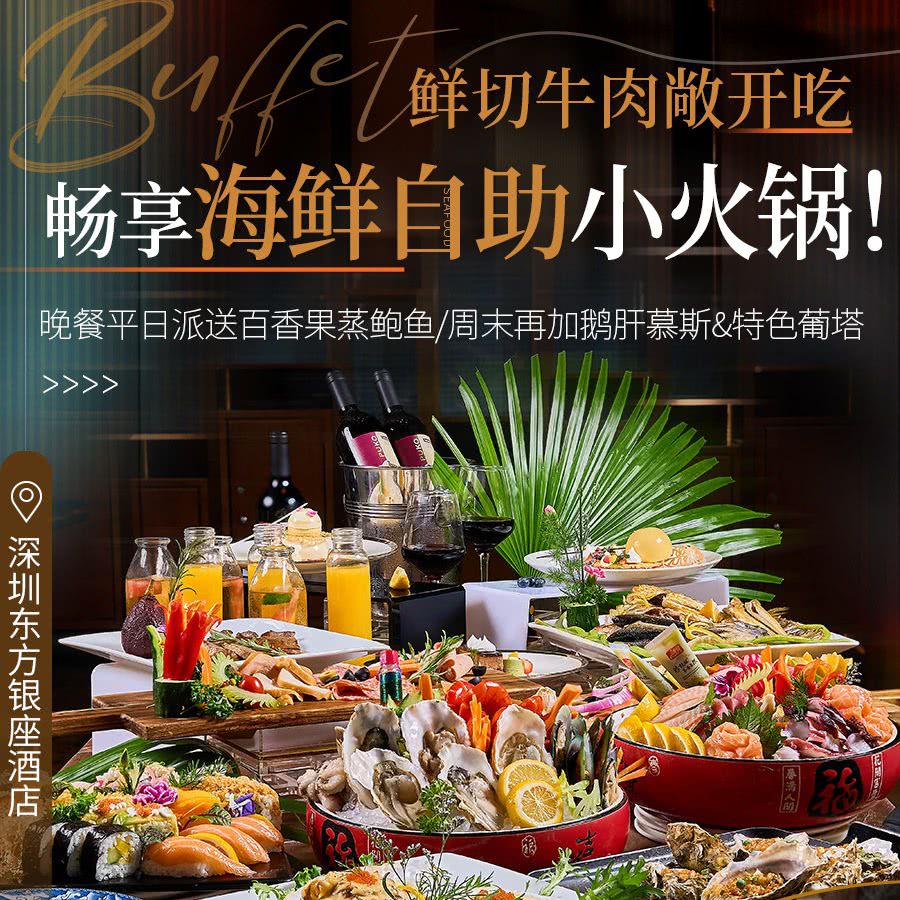 畅享海鲜自助小火锅!¥99抢【深圳东方银座酒店】儿童自助午/晚餐通兑券,周末不加价!鲜切牛肉敞开吃,晚餐平日派送百香果蒸鲍鱼/周末再加鹅肝慕斯&特色葡塔!7分钟车程达世界之窗