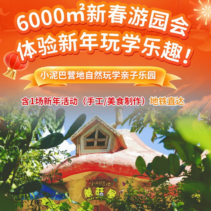 【新春游园会】体验新年玩学乐趣!¥68/1大1小入园畅玩【小泥巴营地】,含1场新年活动(手工/美食制作),送1次挖掘机项目游玩!6000㎡城区户外乐园!地铁直达