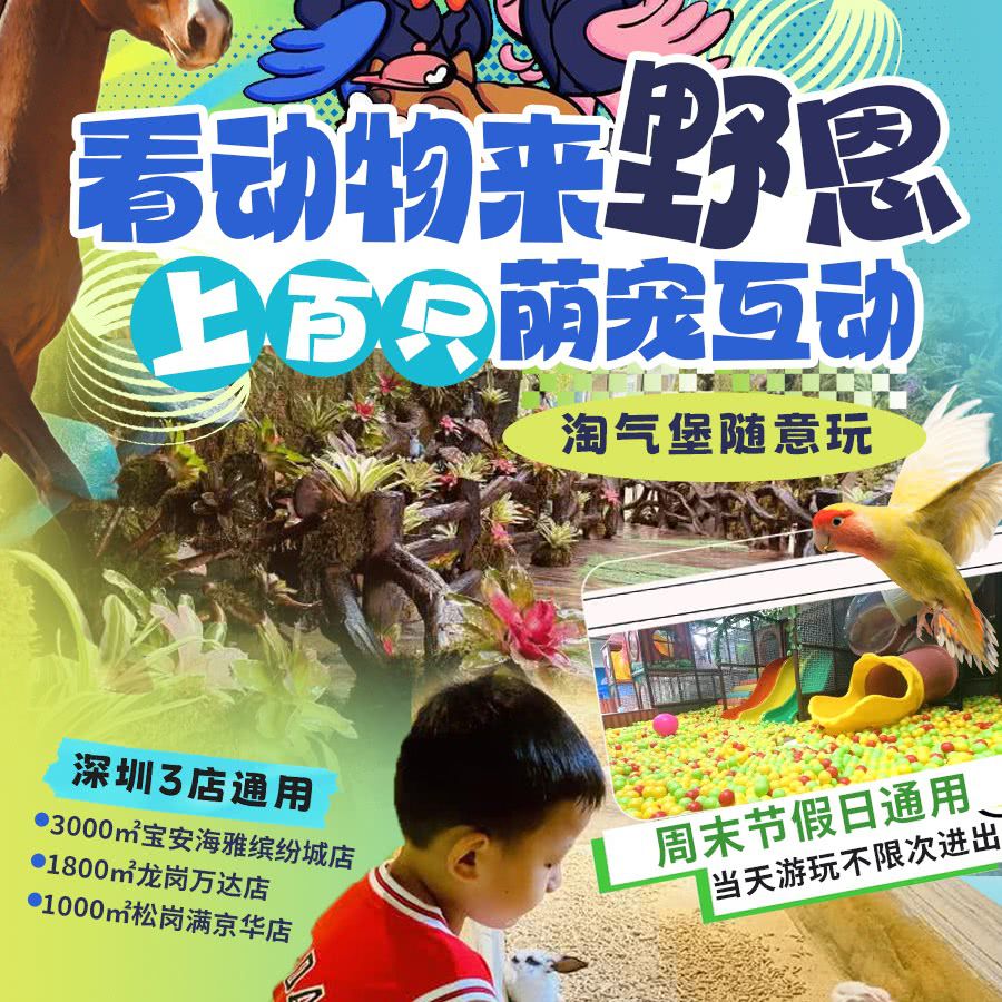 【深圳3店通用】当天不限次进出!¥99起野恩动物乐园,水豚、羊驼、爬宠等上百只萌宠互动,淘气堡随意玩!周末/清明/五一/端午不加价