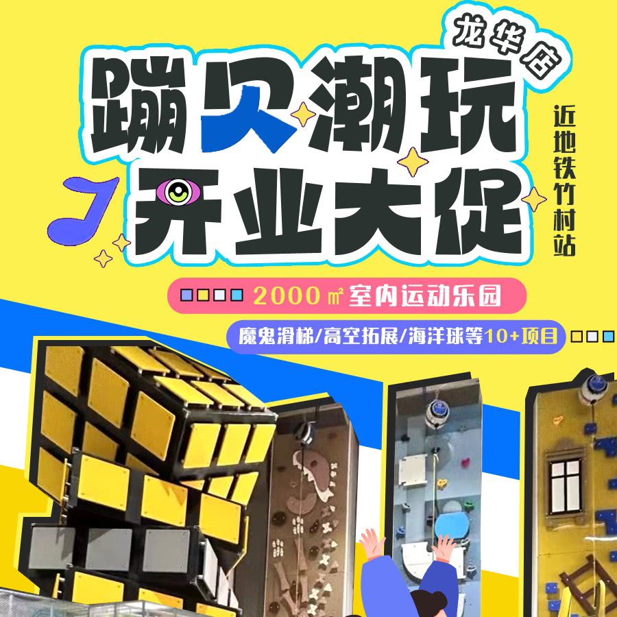 【开业大促】2000㎡室内运动乐园!蹦贝潮玩(龙华店),¥39早场2小时,¥69当天不限时!全场通玩!魔鬼滑梯/高空拓展/海洋球...近地铁竹村站!周末暑期通用