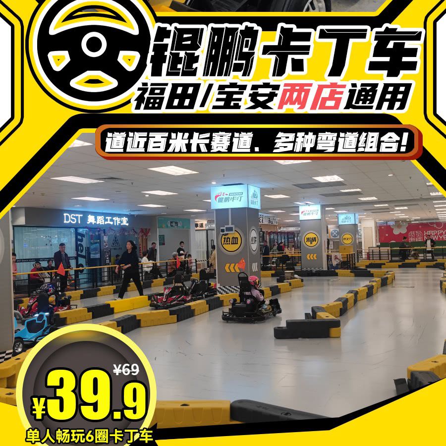 【周末暑期通用】锟鹏卡丁车 | ¥39.9畅玩6圈卡丁车!近百米长赛道、多种弯道组合,帅气“飙”车!福田绿景佐阾新邑购物中心/宝安前进路沃尔玛两店通用