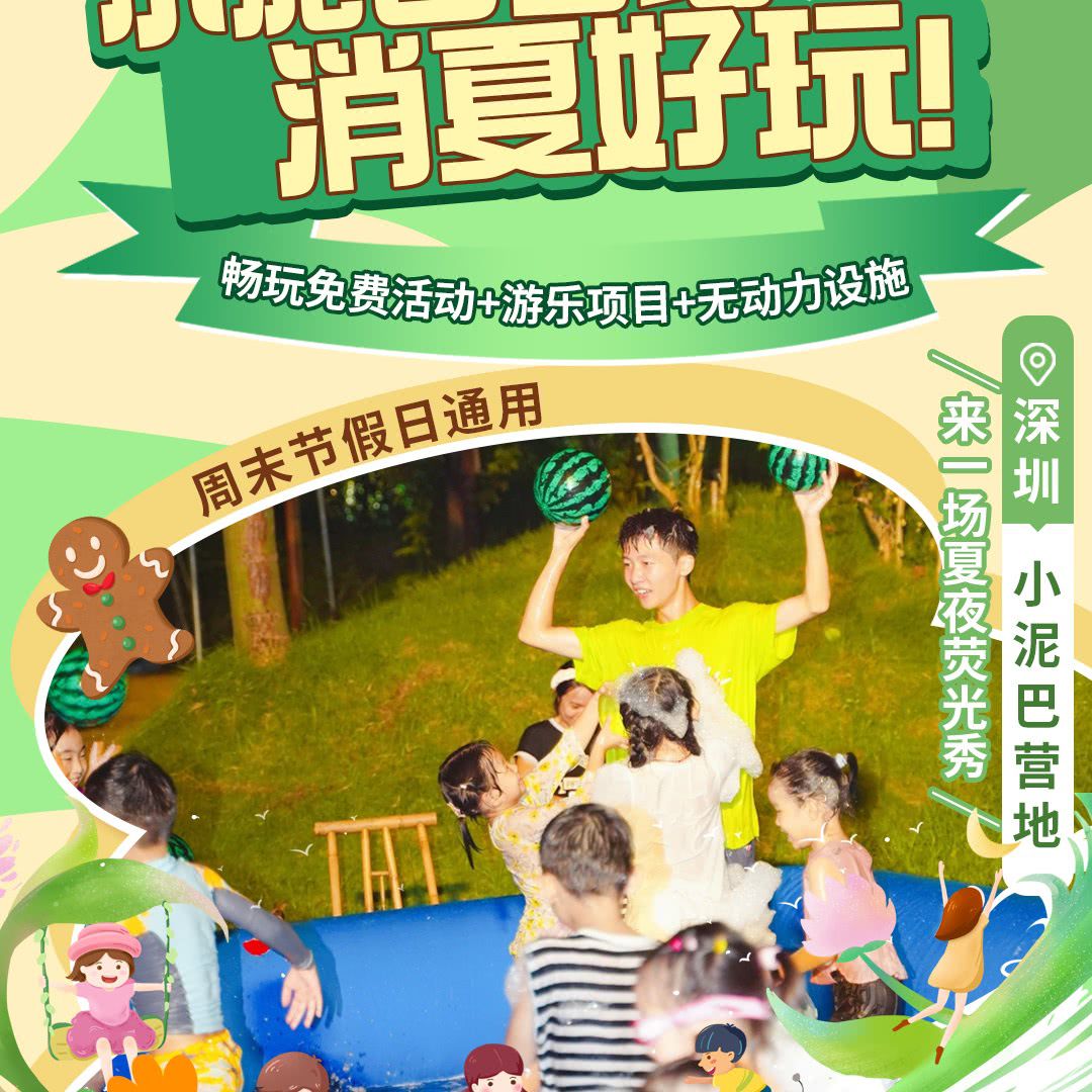 【小泥巴营地】消夏好玩!低至¥29起1大1小或2大1小入园,含泡沫大战+赶海摸鱼2项游玩项目!入园可畅玩西瓜水池趴&草坪星光电影免费活动、开放无动力设施!地铁直达