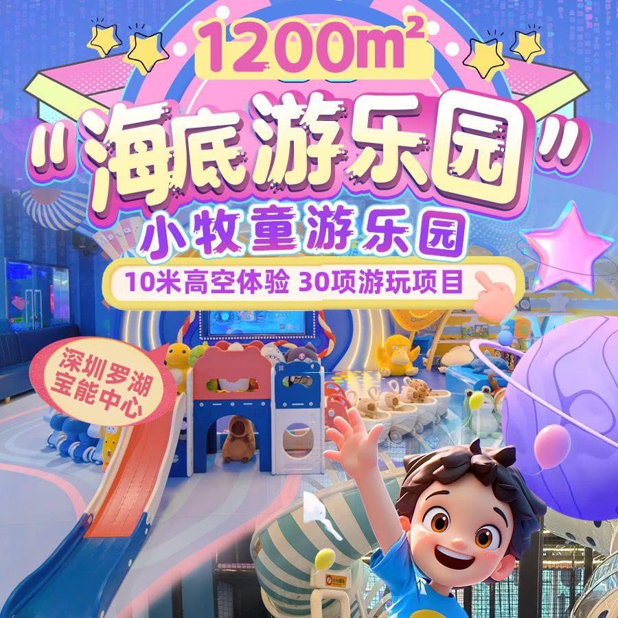 【小牧童游乐园·罗湖宝能环球汇店】人均不到¥50/次,¥199/1大1小2次,开卡后1个月有效,周末节假日通用!1200㎡“海底游乐园”,全天不限时畅玩,凭腕带3h内可再次入园!无需预约